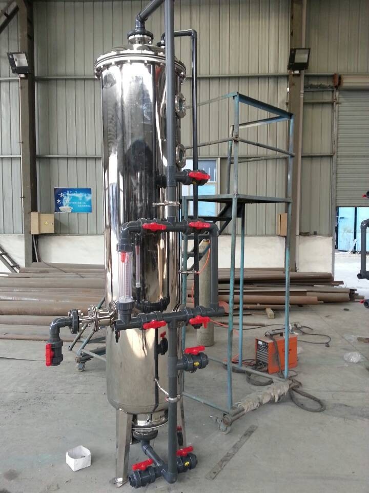 活性炭吸附除去氨氮是有限的,并且由于如果活性炭飽和也很難再生,用反沖洗活性炭不能從根本回復吸附能力。離子交換器采用氯化鈉做為再生藥劑,和軟化設備一樣,可以采用自動控制閥控制,經過離子交換器交換下來的氨氮通過沖洗排出,操作簡單方便,占地面積小。